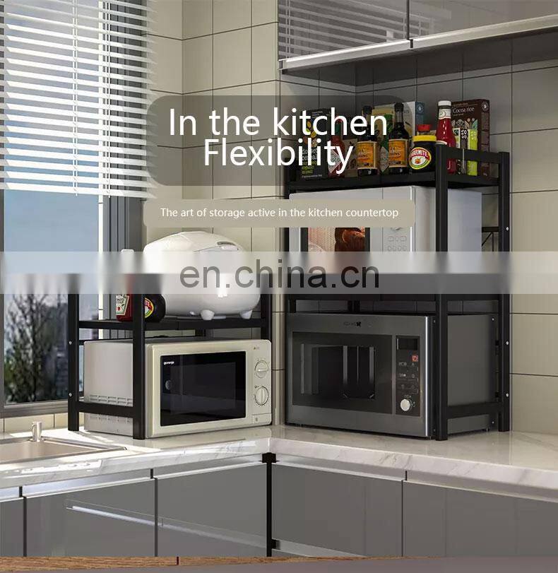 Home > Products > Kitchen Storage > Adjustable Household Microwave Oven Rack High Quality Carbon Steel Layered Shelf Kitchen Appliance Storage Organizer