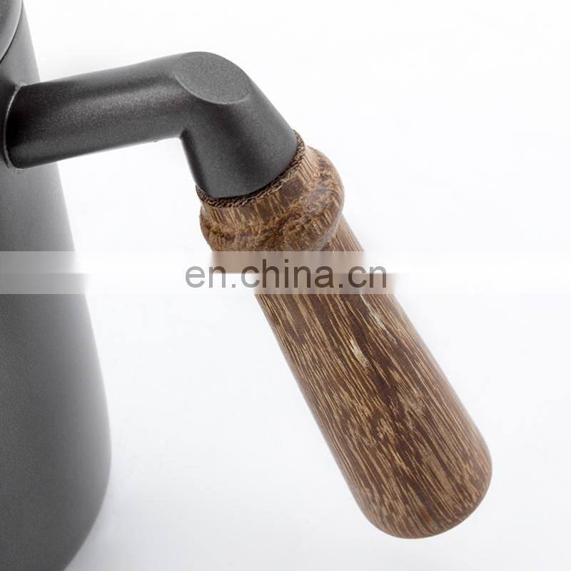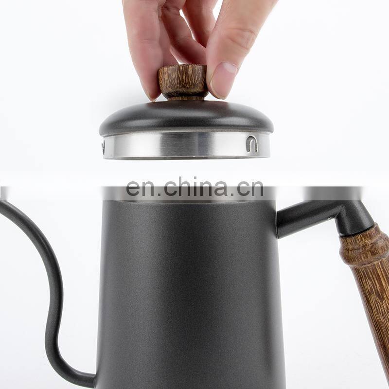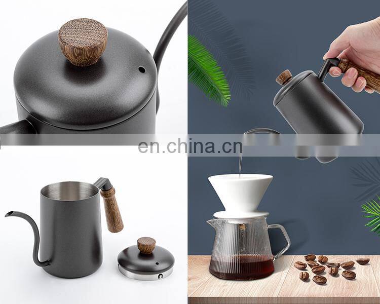 Amazon Hot Sale 600ml Stainless Steel Gooseneck Coffee Drip Kettle With Wood Handle, Black