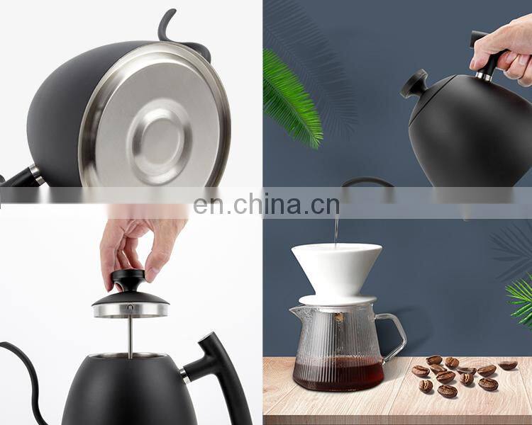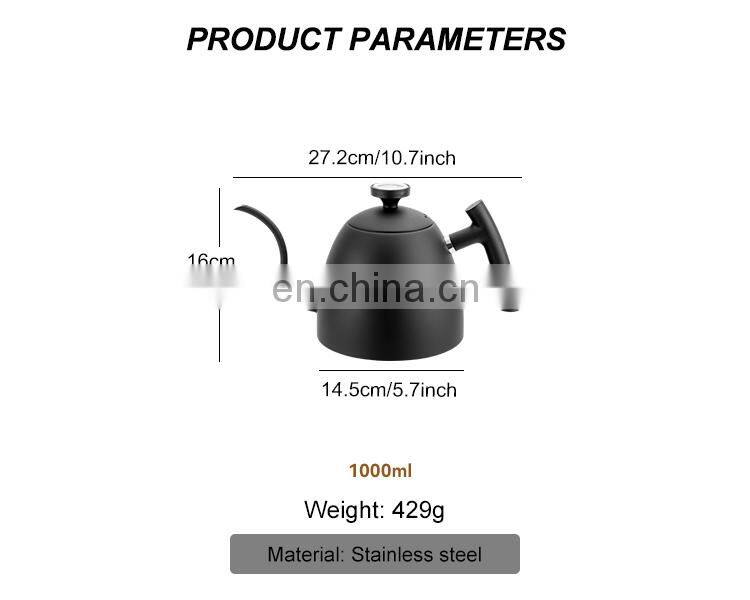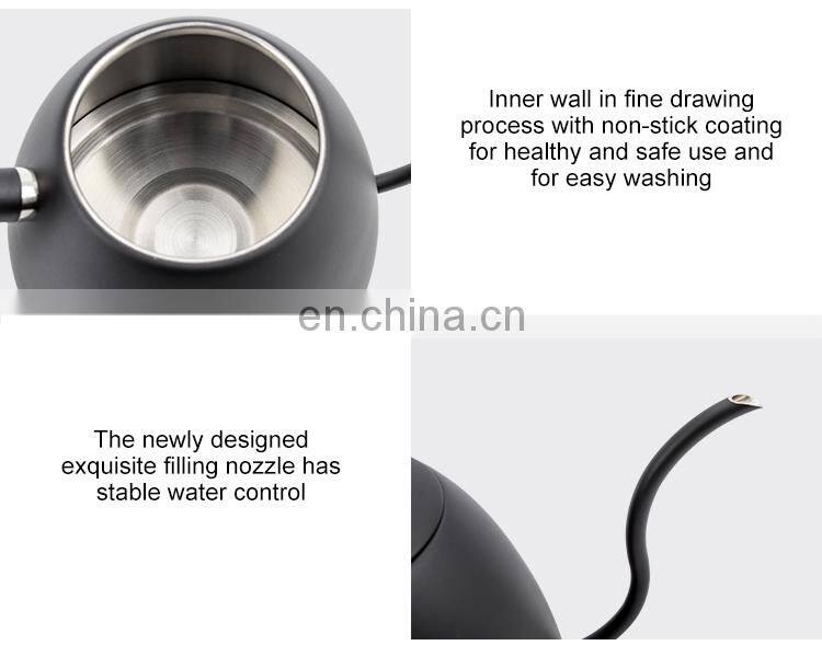 Feature | 1. Made of 304 stainless steel of seamless integration, strong and durable 2. Fine and slender gooseneck sprout with continuous,convergent and stable water flow 3. Inner wall in fine drawing process with non-stick coating for healthy and safe use and for easy washing 4. Ergonomically designed handle for comfortable holding and no heat |