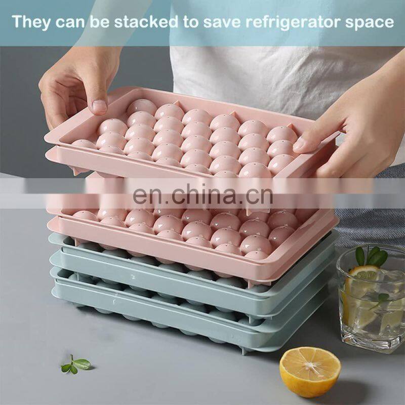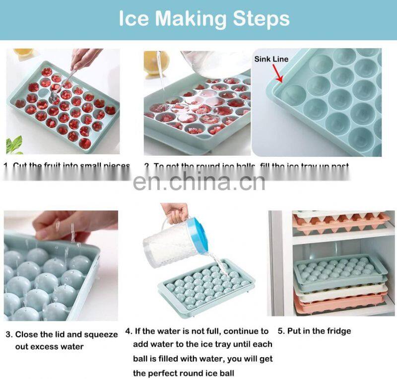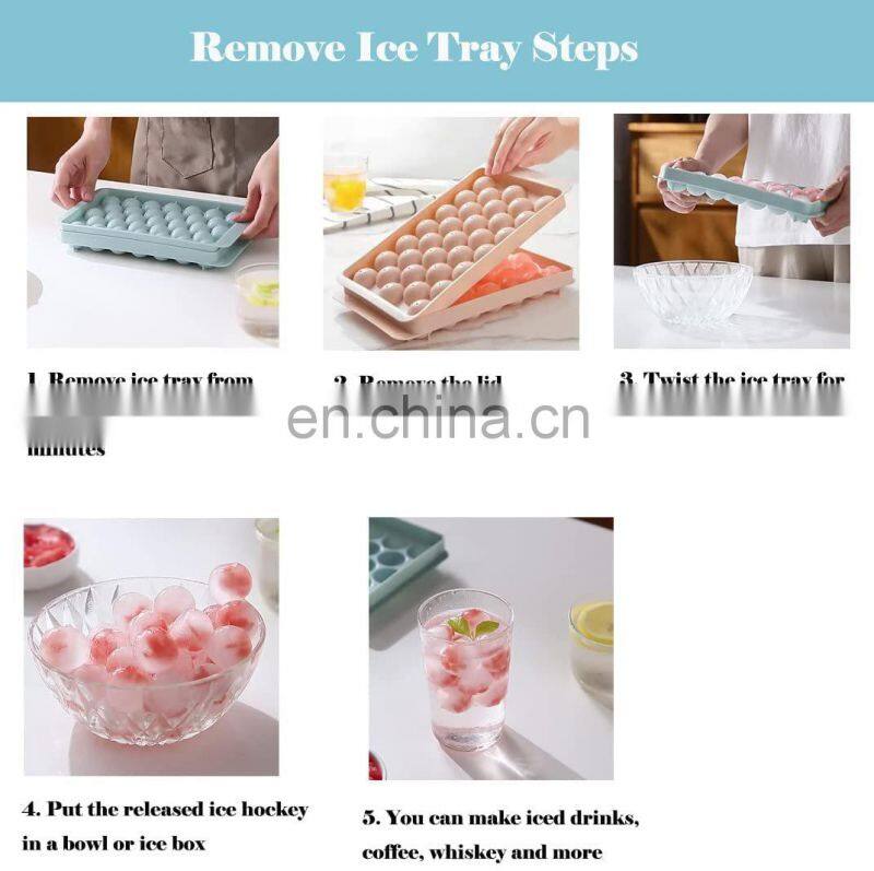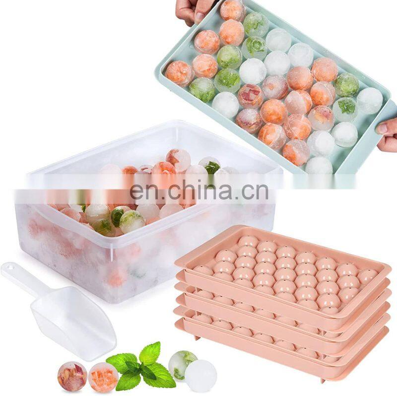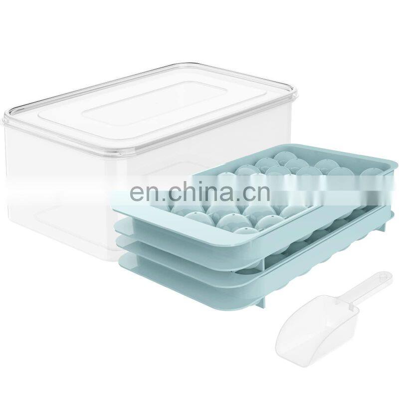 Easy Release Round Ice Cube Tray With Lid Ice Ball Maker Mold With 1 Ice Bucket 1 Scoop for Freezer BPA Free