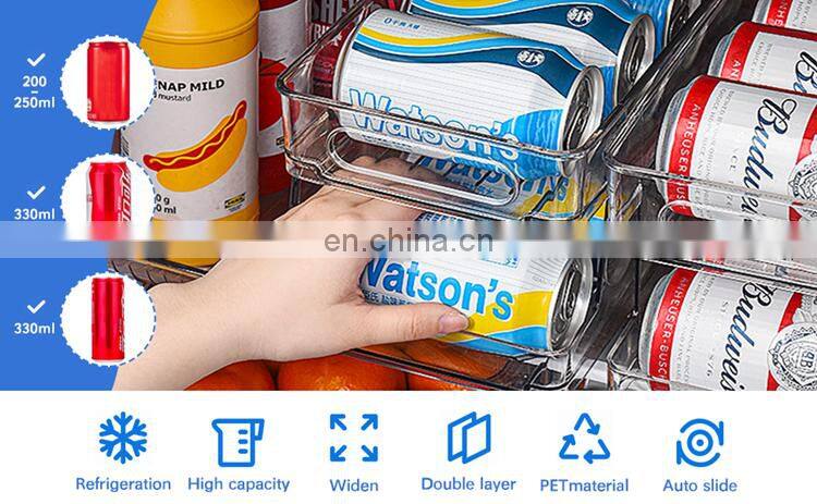 Clear Plastic Stackable Kitchen Refrigerator Organizer Bins Pop Soda Can Dispenser Beverage Holder Wth Lid