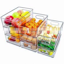 Amazon Hot Sell Save Space Clear Plastic Large Storage Basket Organizer Bins for Refrigerator Pantry Kitchen