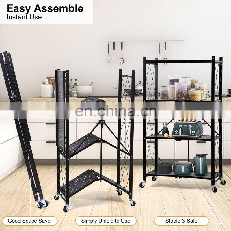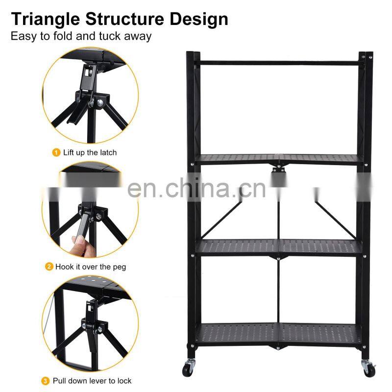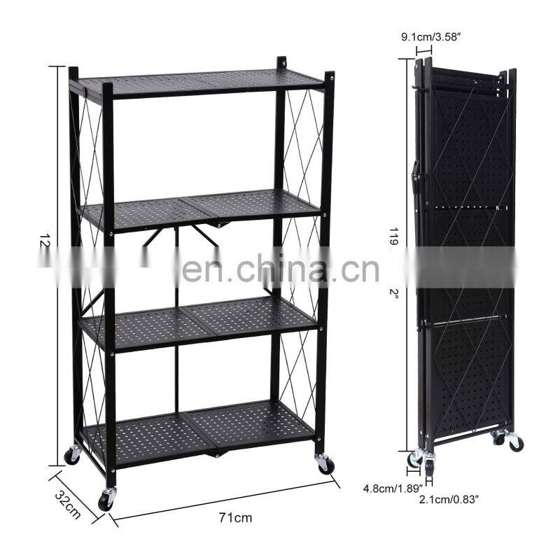 Home > Products > Kitchen Storage > 4 Tier Heavy Duty Foldable Metal Rack Garage Kitchen Storage Shelving Unit Wheels Moving Easily Organizer Shelves Holder