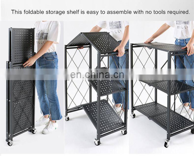 3 Tier Foldable Furniture Metal Shelves Heavy Duty Shelf Kitchen Garage Organizer Storage Shelving Holders Rack With Wheels