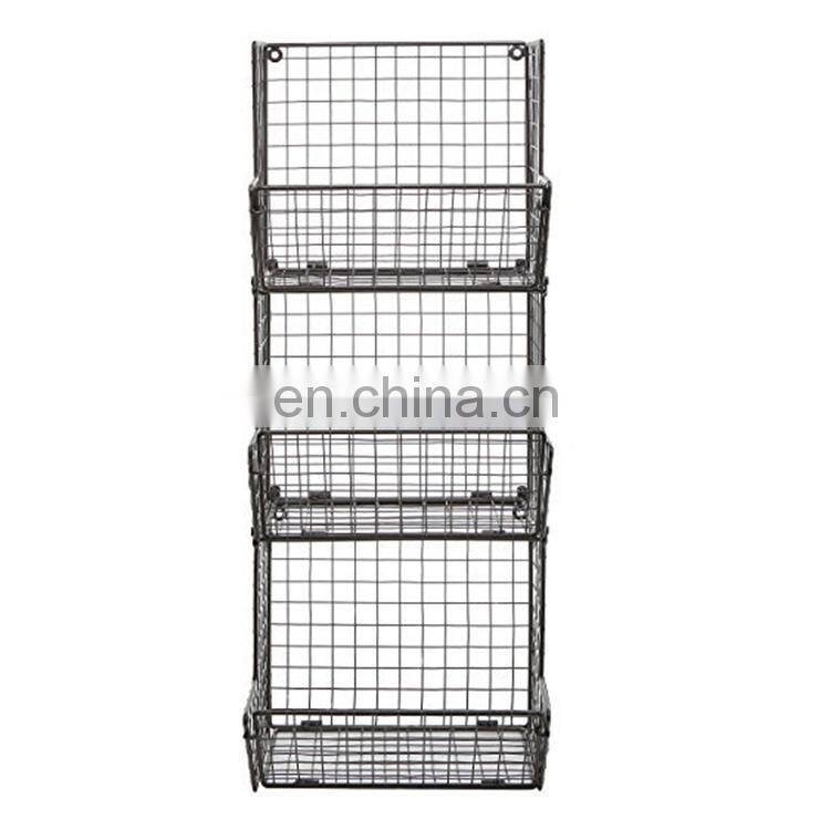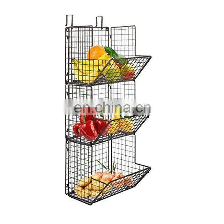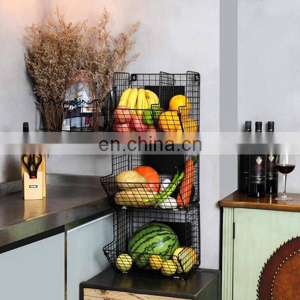 Detachable Wall Mounted Standing Rustic Shelves Kitchen Organizer Fruit Snack Storage Metal Wire Hanging Fruit Basket