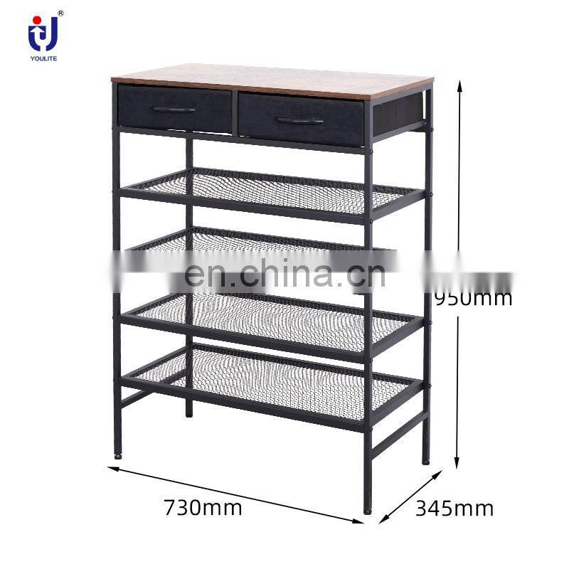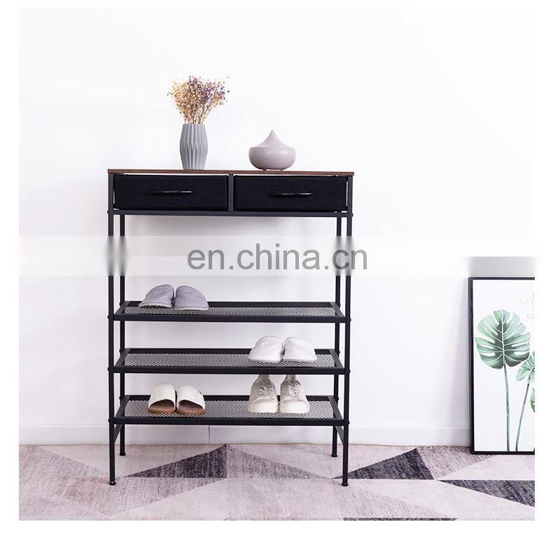 New Arrival Vintage Five-layer Entryway Doorway Shoes Storage Rack With Two Cloth Drawers As You Require
