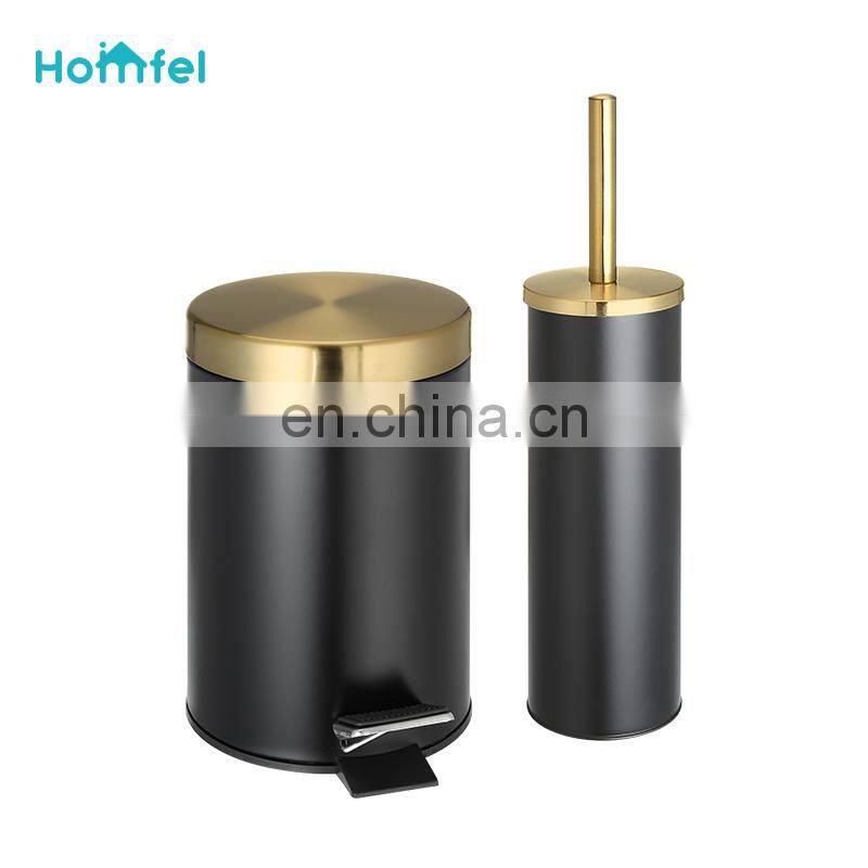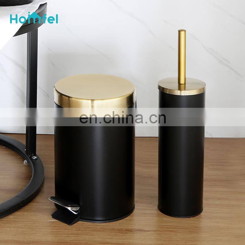 Black &Gold Vintage Bathroom Accessories Trash Can Peadal Bin Toothbrush Holder Set Metal