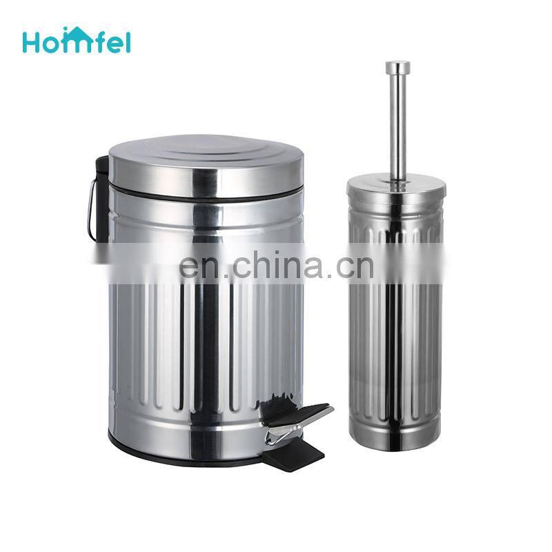 Classic Metal Bathroom Accessories Set 2 Pieces Trash Can Stainless Steel Waste Bin Toilet Brush Holder Mirror FINISHr