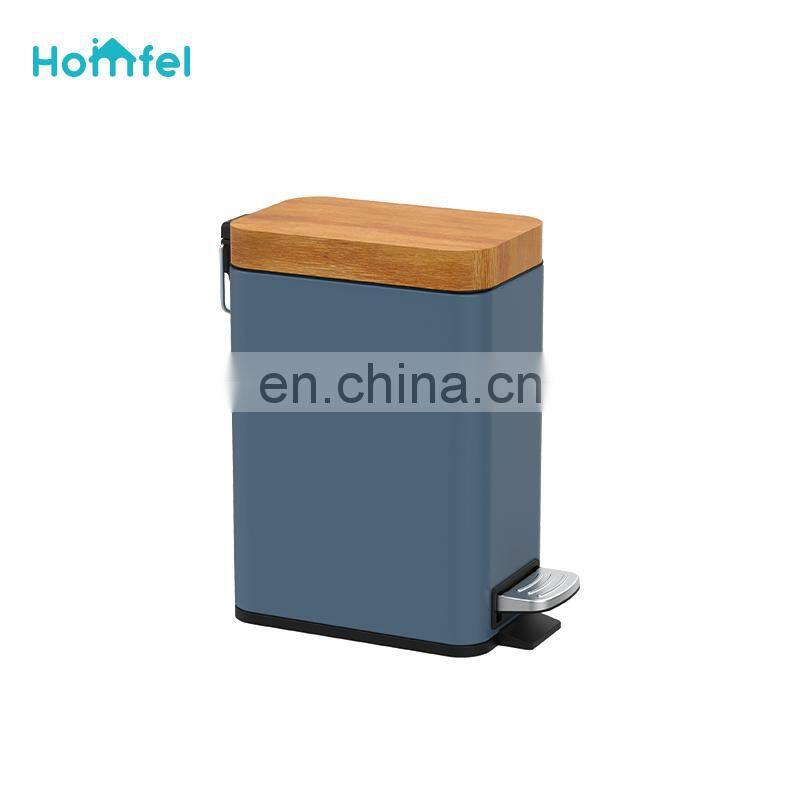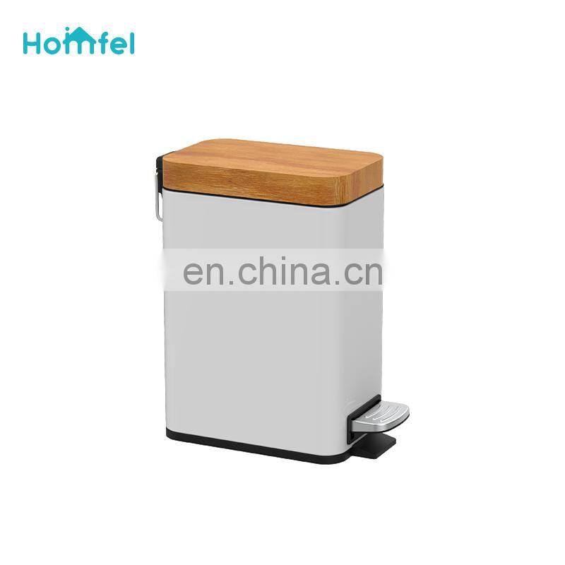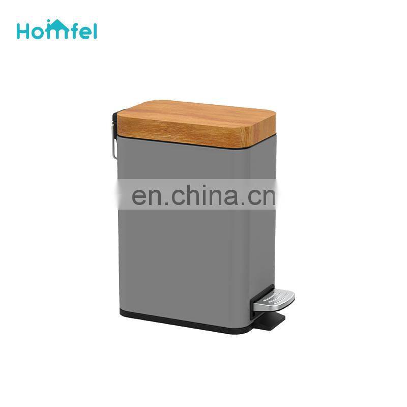 Entry-level Basic 6L Stainless Steel Rectangular Pedal Bin Bamboo Lid Soft Close Inner Bucket Home Bathroom Kitchen Trash Bin