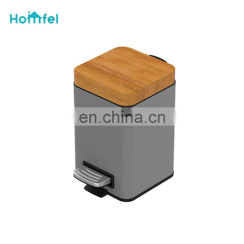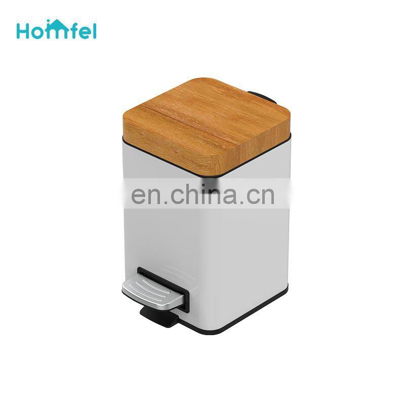 Home > Products > Trash Can > Entry-level Basic 3L Stainless Steel Rectangular Square Pedal Bin Bamboo Lid Soft Close Inner Bucket Home Bathroom Kitchen