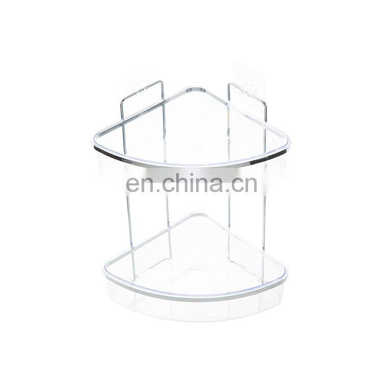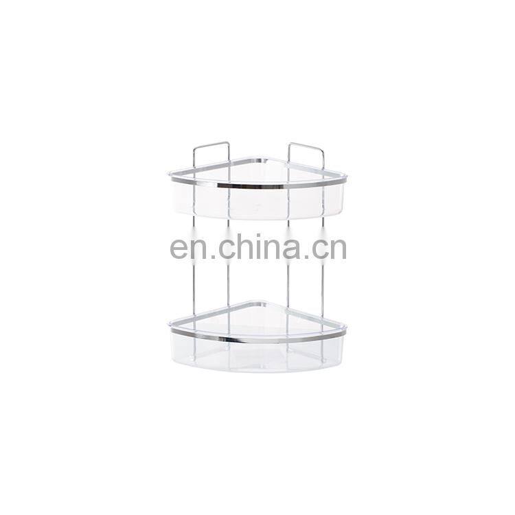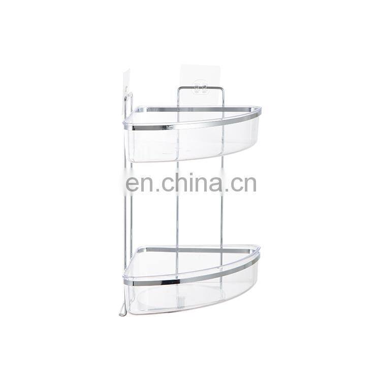 - Customized Chrome Stainless Steel Bathroom Caddy With Magic Sticker 2-Layer Triangle Wall Mounted Storage Rack