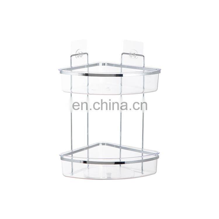 - Hot Sales Adhesive Corner Shower Caddy Two Tier Iron Wire Rack Bathroom Corner Shelf