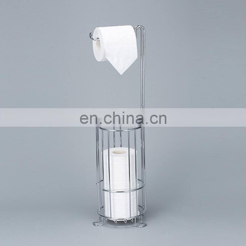 Home > Products > Shower Caddy > Free Standing Toilet Paper Holder Spare Roll Bathroom Storage Toilet Paper Stand Steel Chrome