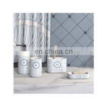 Polyresin Grey Sandy Bathroom Accessory Set With Rubber Wood Includes Soap Dispenser Soap Dish Tumbler Toothbrush Holder