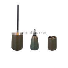 Stoneware Green Reactive Glaze Bathroom Accessory Set With Rubber Wood Includes Soap Dispenser Soap Dish Tumbler Toothbrush
