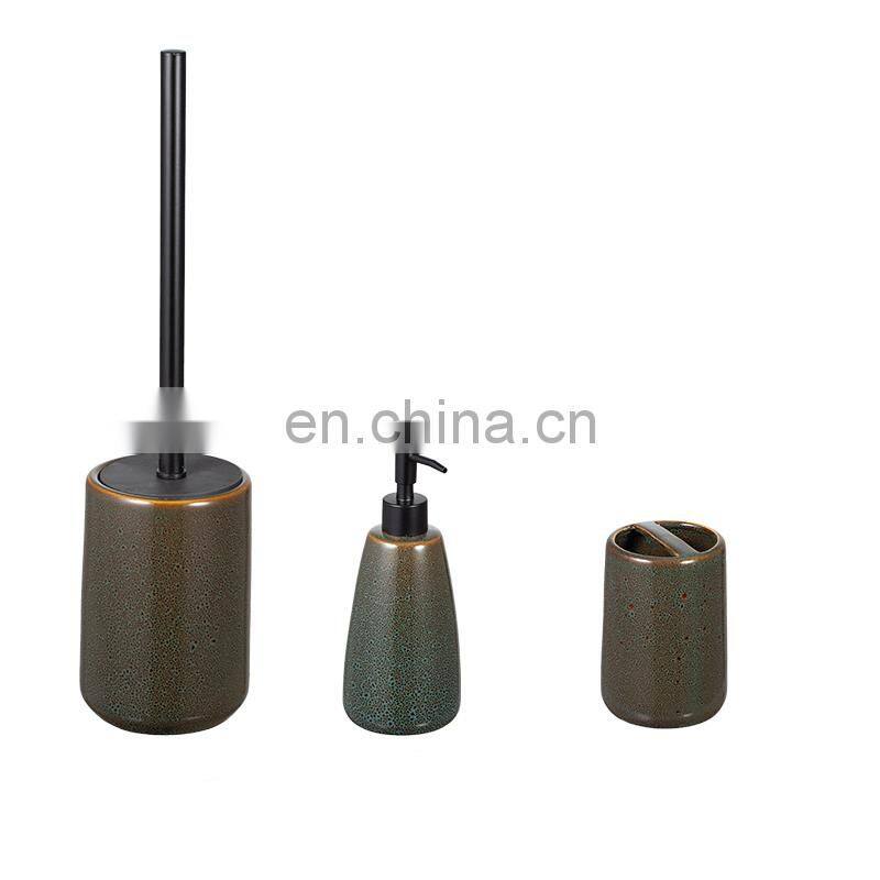Portrait Black Ceramics Bathroom Decor Accessory Soap Dispenser Tumbler Soap Dish Toothbrush Holder Ceramic Bathroom Set