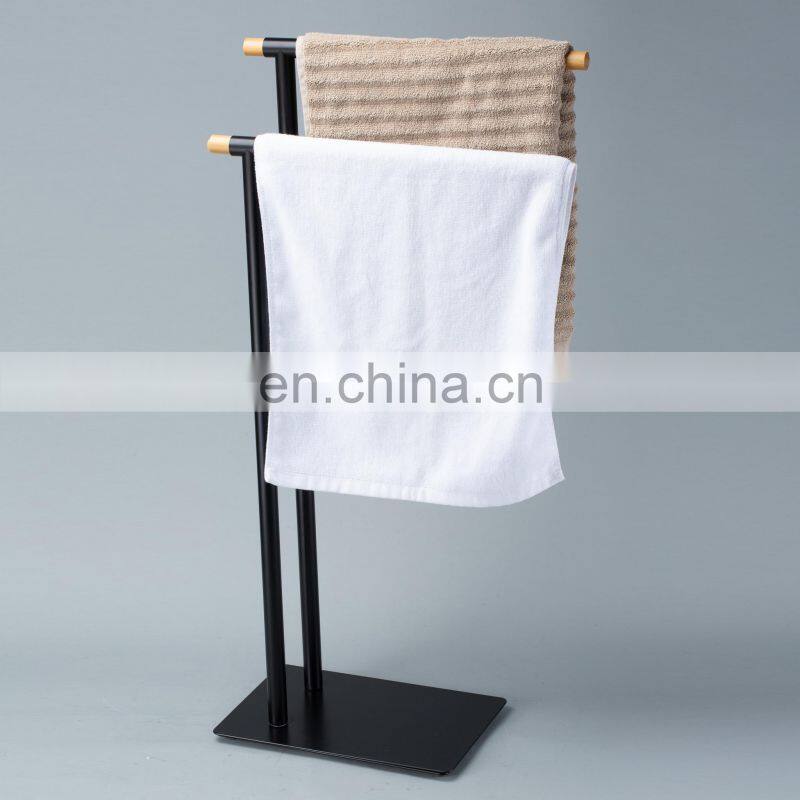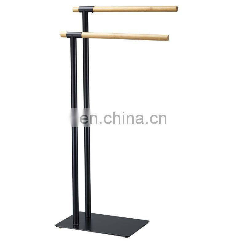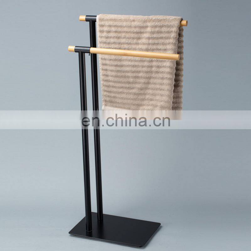 2022 Brand New Stand Type Black Bamboo Metal DoubleTowel Rack