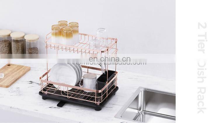 Home > Products > Kitchen Organizer > 2 Tier Compact Dish Drainer Rack Board With Chrome Plating Wire For Kitchen Organization