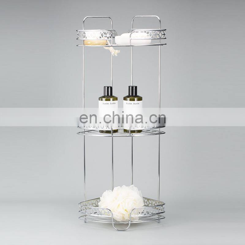 Factory Diamond Series Modern Design Iron Wire 3 Tier Standing Bathroom Storage Caddy Corner Shelf