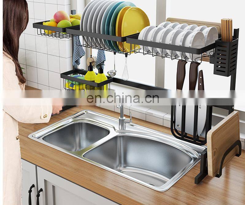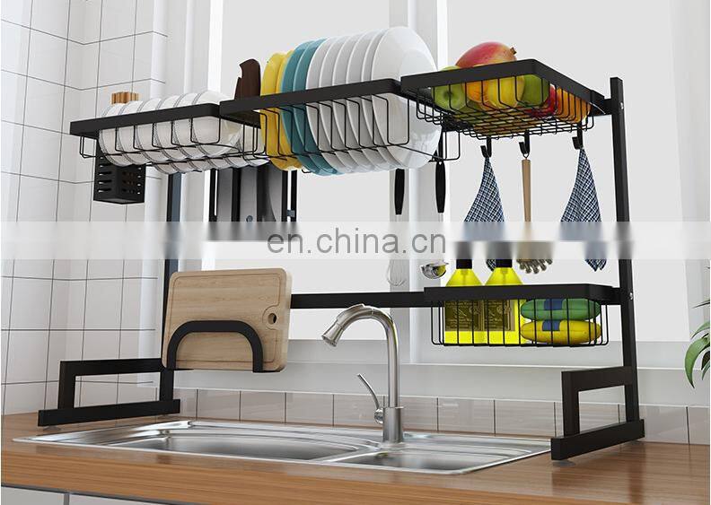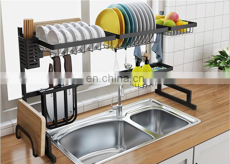 Manufacturer Wholesale Kitchen Storage Sink Rack Dishes Utensils Storage Stainless Steel Paint Faucet Drain Rack