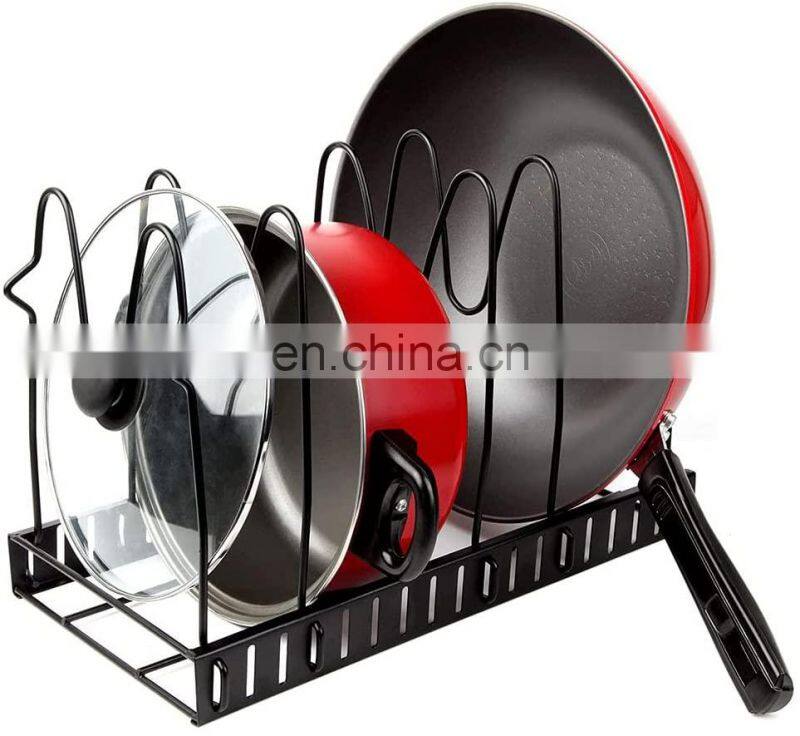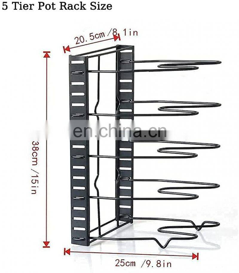 Pot Pan Rack Organizer Adjustable 5 Tier Pans Lid Organizer Rack Holder Heavy Duty Black Pot Lid Holders for Cookware