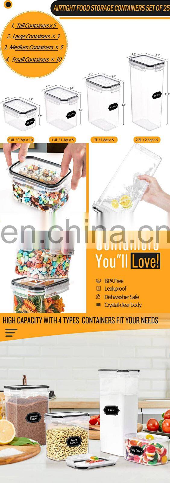 25 Pack Airtight Food Storage Containers Set BPA Free Plastic Dry Food Canisters for Kitchen Pantry Organization and Storage