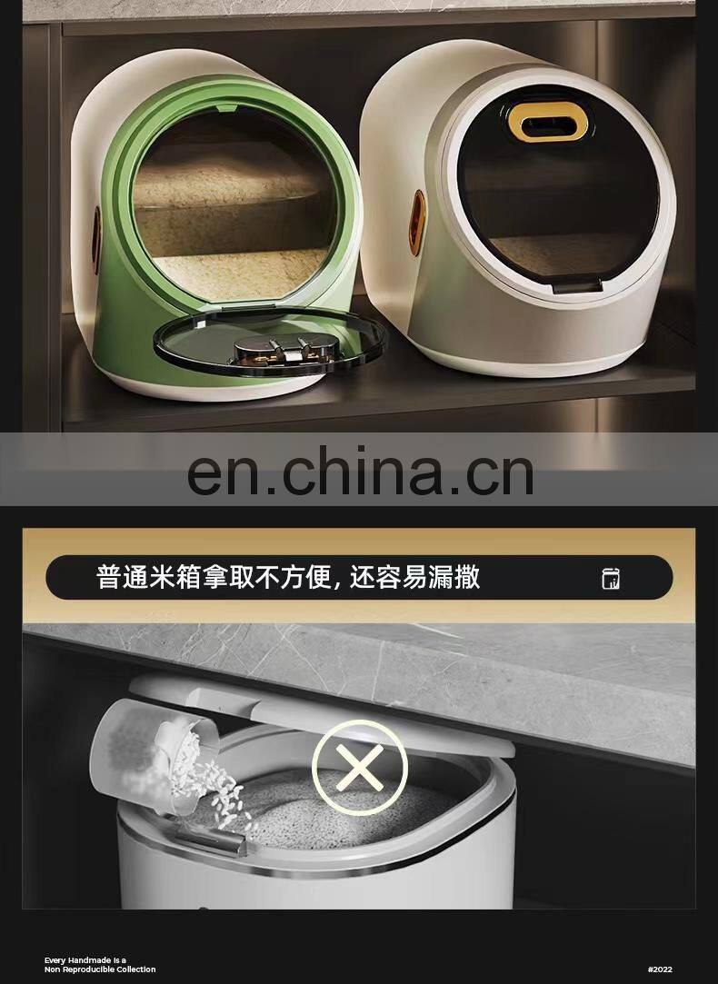 Kitchen Round Rice Storage Box Large Sealed Grain Container Automatic Rice Bucket With Flip Cover
