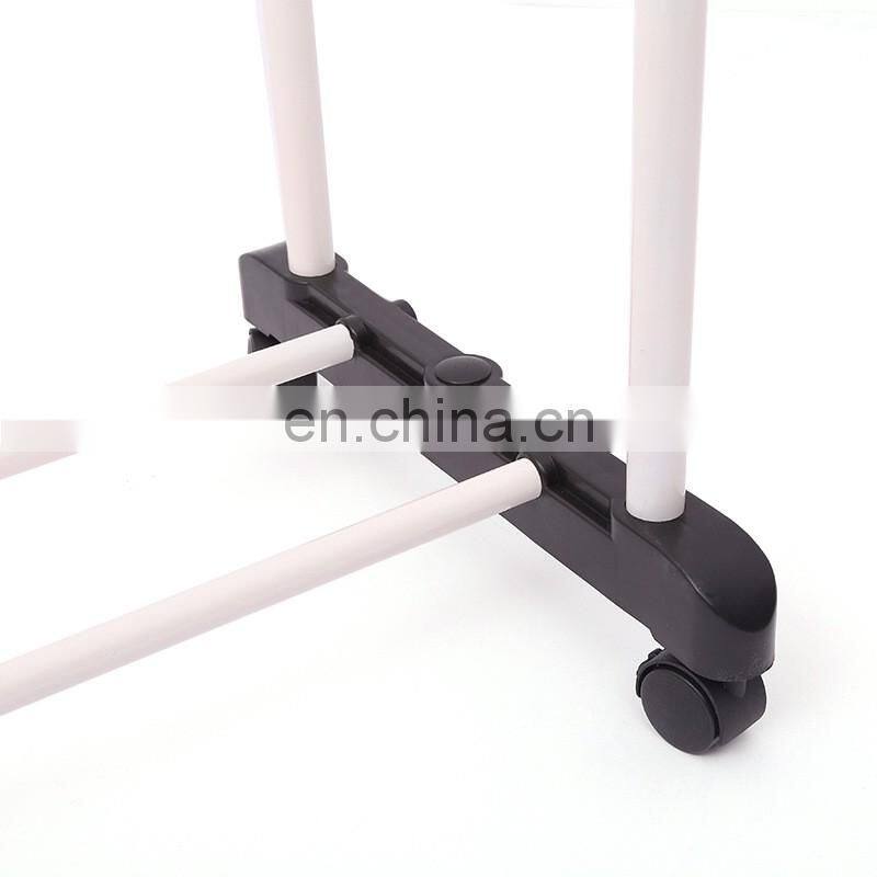 Factory Direct Sell Adjustable Double Pole Rod Stiness Steel Garment Rack Rolling Clothes Organizer