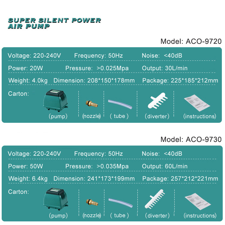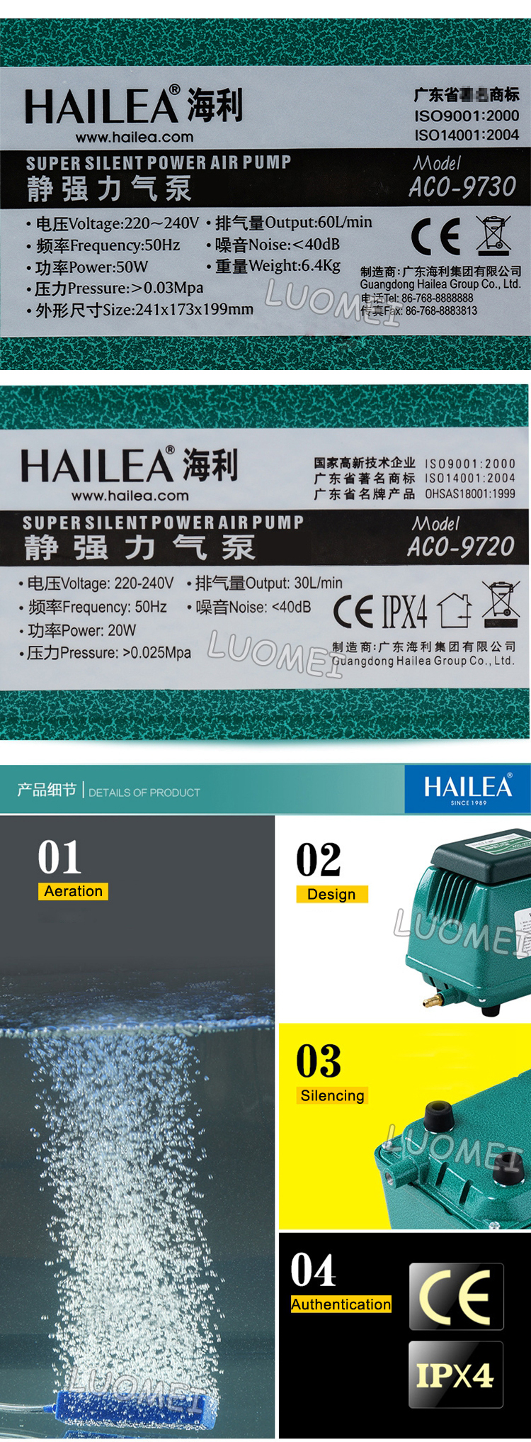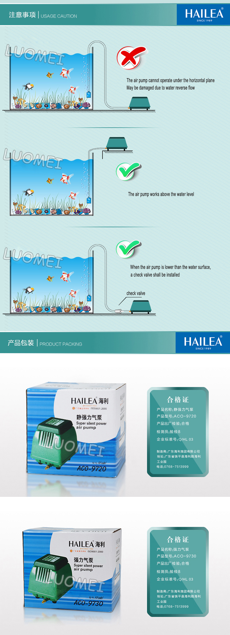 Home > Products > Air Pump > Hailea Air Compressor Low Noise ACO-9720 ACO-9730 High Pressure Silent Electromagnetic Air Pump