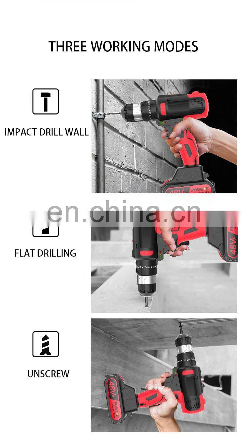 Quality Portable Electric Cordless Impact Drill Wrench 48v Power 18v Cordless Tools Chargeable Hand Drill Wireless Machine