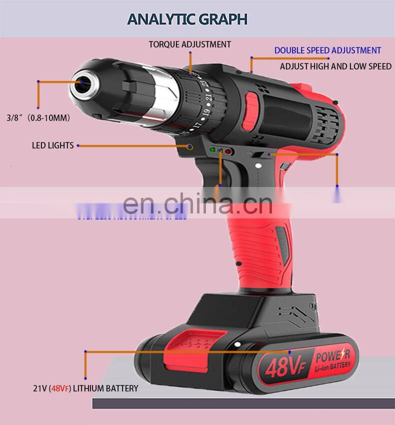 48V Power Drills Tools Electric Hand Drilling Machine Driver Cordless Impact Wrench Drill Price 12V Screwdriver Battery