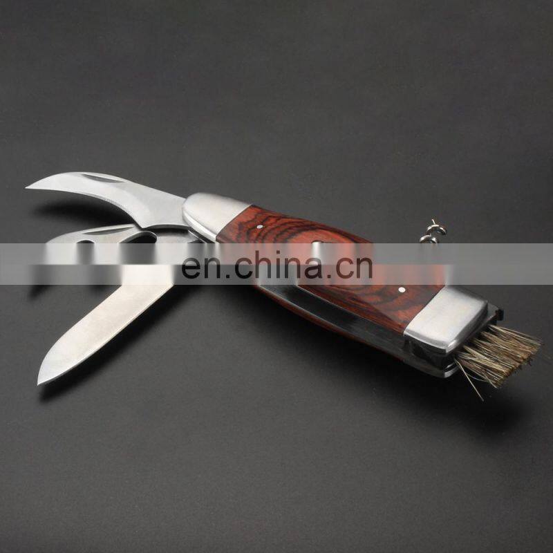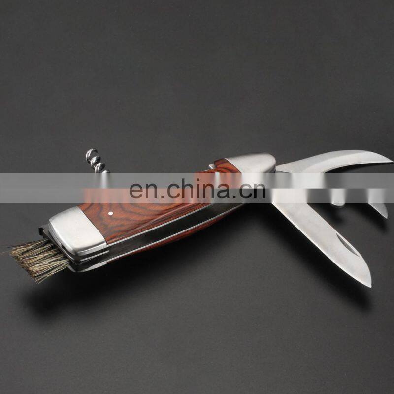Product Name | stainless steel multi function wine corkscrew pocket folding BBQ brush knife with laguiole pakka wood handle mushroom knife |