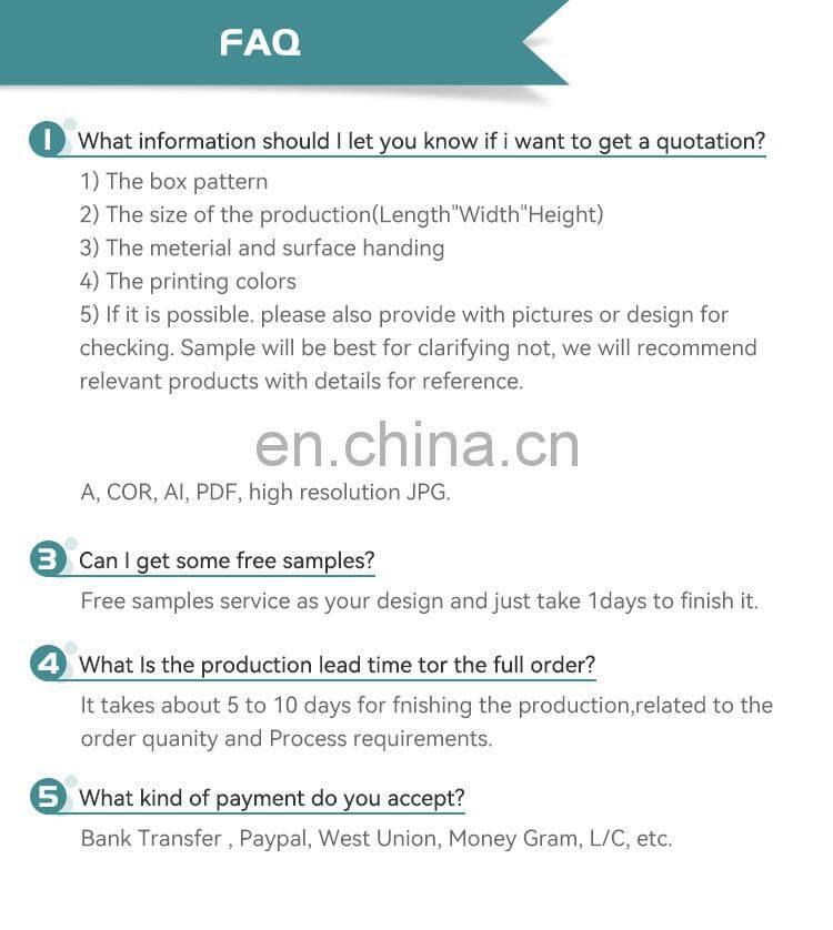 Surface Disposal | Matte or gloss lamination,Burning gold or silver,Spot UV,Embossed or debossed,Varnish,Other as requested. | |