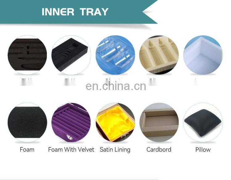 Boxes Accessory | EVA tray, Ribbon, PVC or PET tray, EVA, Sponge, Velvet, Cardboard or Flocking inserts. | |