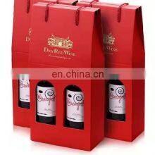 Custom Logo Printing Corrugated Cardboard Carrier Bag Paper Packaging Red Wine Box