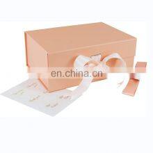 Custom Logo Luxury Rose Gold Folding Cardboard Gift Box With Ribbon for Wedding Proposal Birthday Magnetic Closure Packaging Box