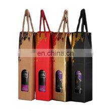 Wholesale Custom Printed Corrugated Paper Packaging With Rope Handle Gift Whisky Red Wine Bag