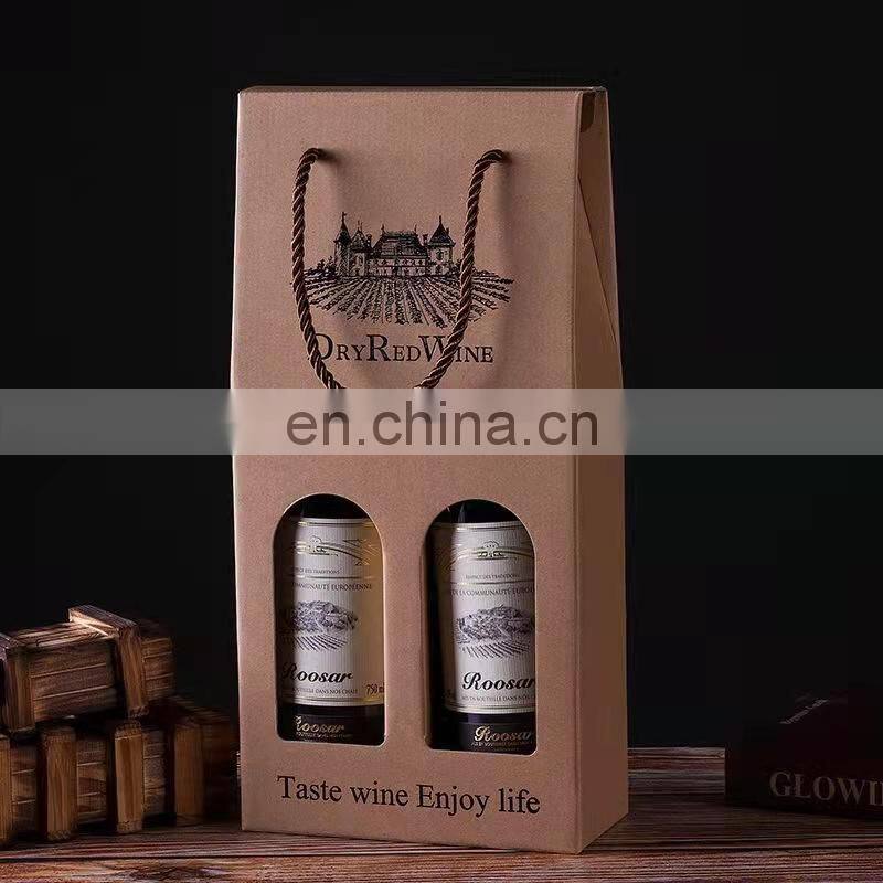 Wholesale Custom Printed Corrugated Paper Packaging With Rope Handle Gift Whisky Red Wine Bag