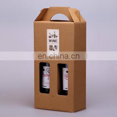 Custom Logo Print Kraft Paper Box Red Wine Set Gift 2 3 Bottles Packaging Box With Handle