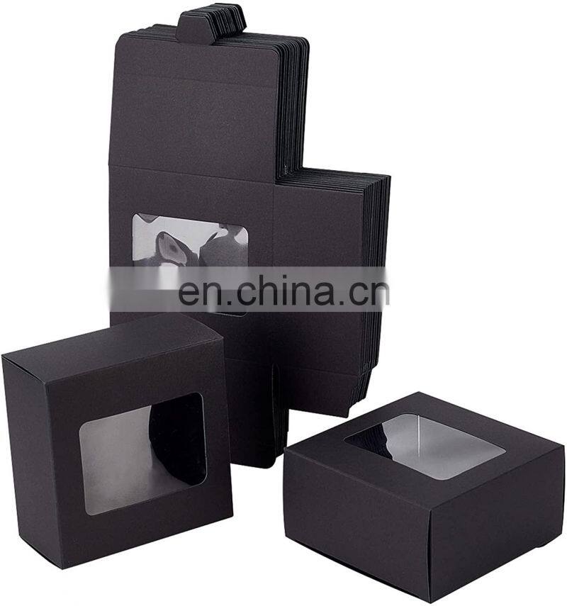 Folding Creative Black Card Paper Packaging Wedding Gift Box With Transparent Window Black Paper Recyclable Box