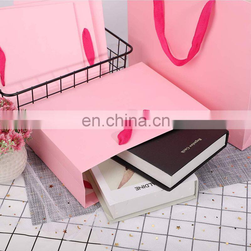 Custom Logo Luxury Pink Cardboard Wedding Valentine Gift/Clothes Shopping Paper Packaging Bag With Ribbon Handle