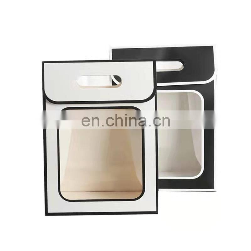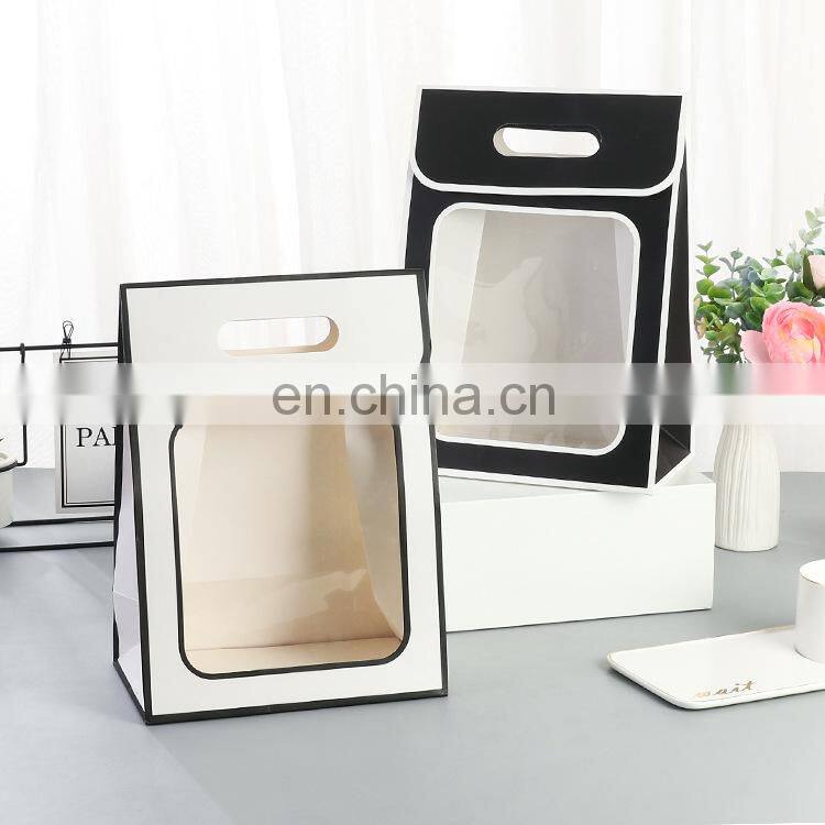 Custom LOGO Fast Delivery Custom Luxury White Paper Bag For Flower Notebook Gift Paper Bag With Window Handbag