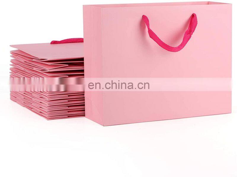 Custom Logo Luxury Pink Cardboard Wedding Valentine Gift/Clothes Shopping Paper Packaging Bag With Ribbon Handle