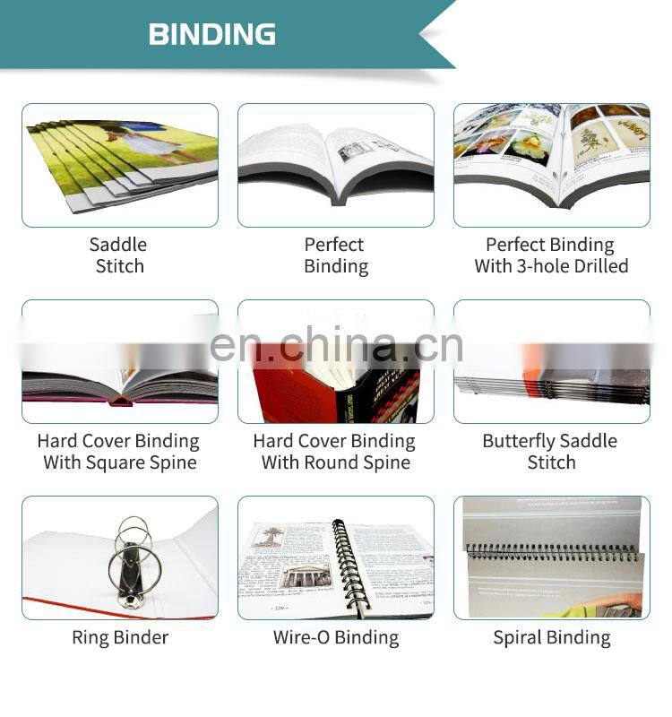 Inner paper | 80gsm, 105gsm, 128gsm, 157gsm, 200gsm gloss art paper or matte art paper; 60gsm, 70gsm, 80gsm, 100gsm, 120gsm white offset paper or nature offset paper | |