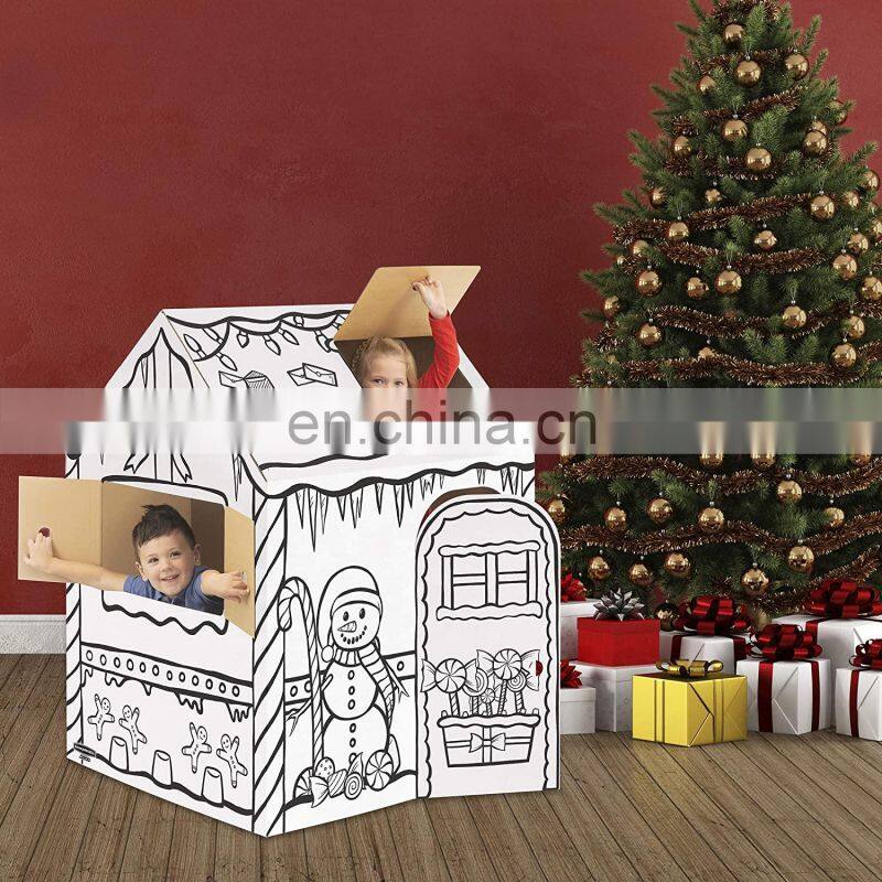 Custom Printed Children Toys For Art & Craft Diy Doodle House Coloring Indoor for Kids Cardboard Playhouse