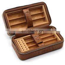 Wholesale Modern Small Travel Portable Solid Cigar Box Bag Cedar Leather Cigar Case Humidor