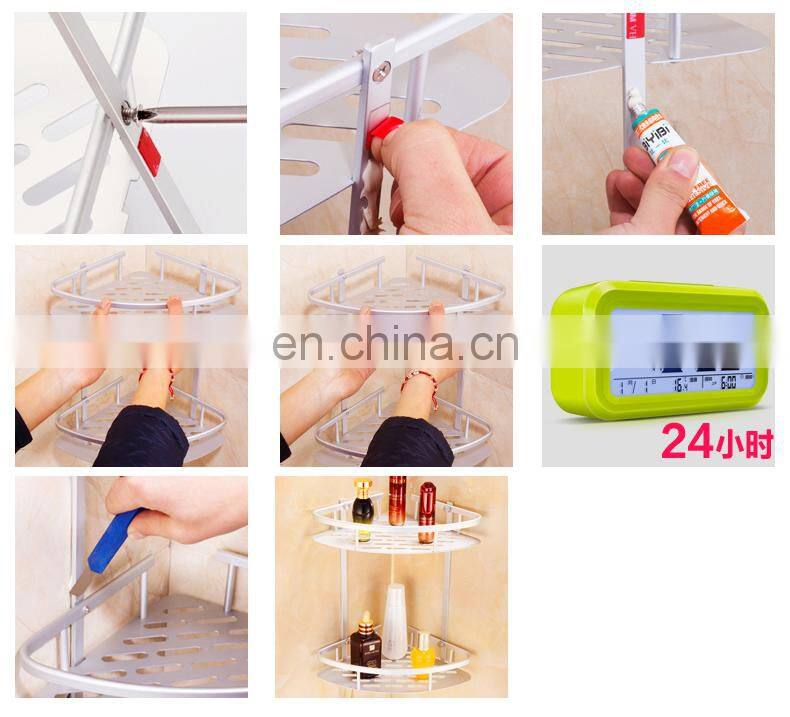 Commodity | Hot Two Tier Bathroom Corner Shelf Tripod Bathroom Shelves Adhesive Corner Kitchen Racks Shampoo Storage Organizer w Hook | ||||