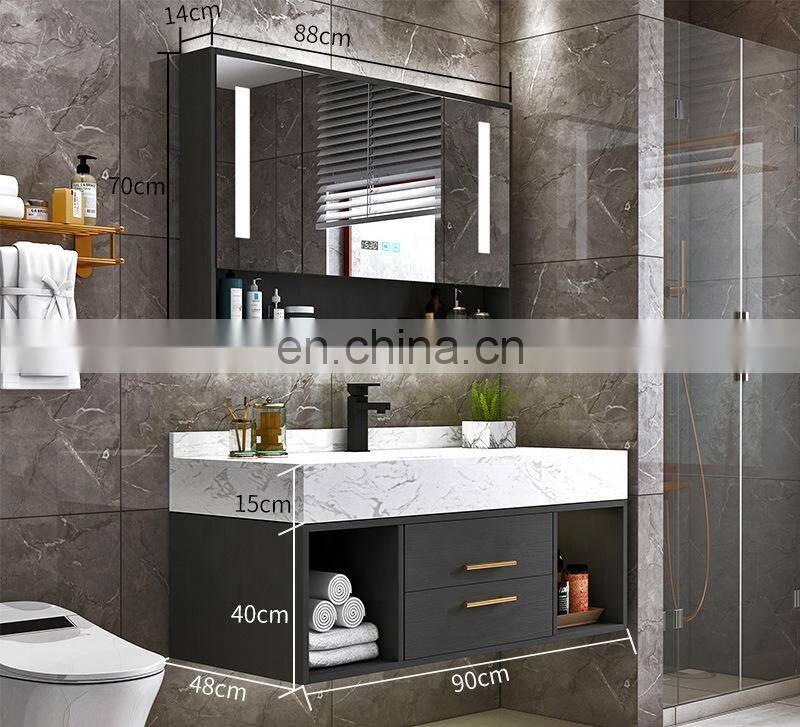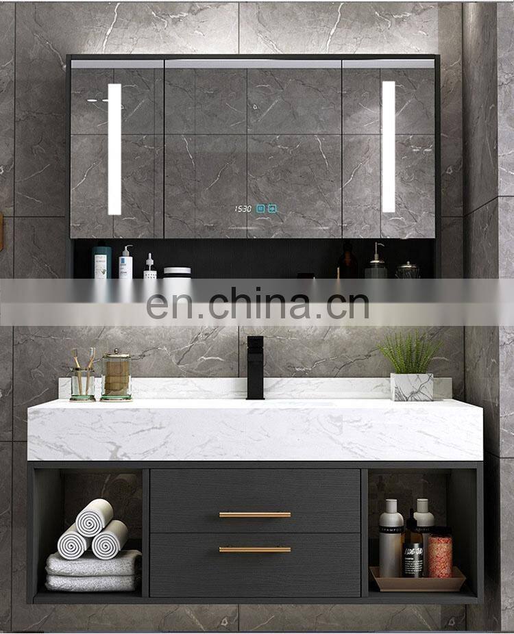 High Class Luxury Wood Bathroom Cabinet Bathroom Vanity Set With Countertop Bathroom LED Smart Mirror Cabinet Home Decor
