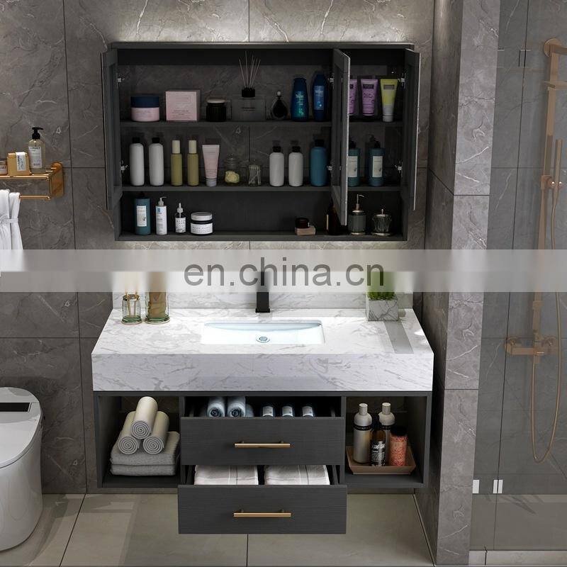 Modern Luxury Stone Bathroom Towel Cabinet Vanity Cabinet Set With Countertop LED Smart Mirror Cabinet