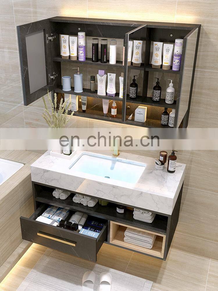 Factory Supply Wall Mounted Bathroom Cabinet Set With Basin Mirror and 2 Drawers Solid Wood VanityNegotiableMOQ: 1